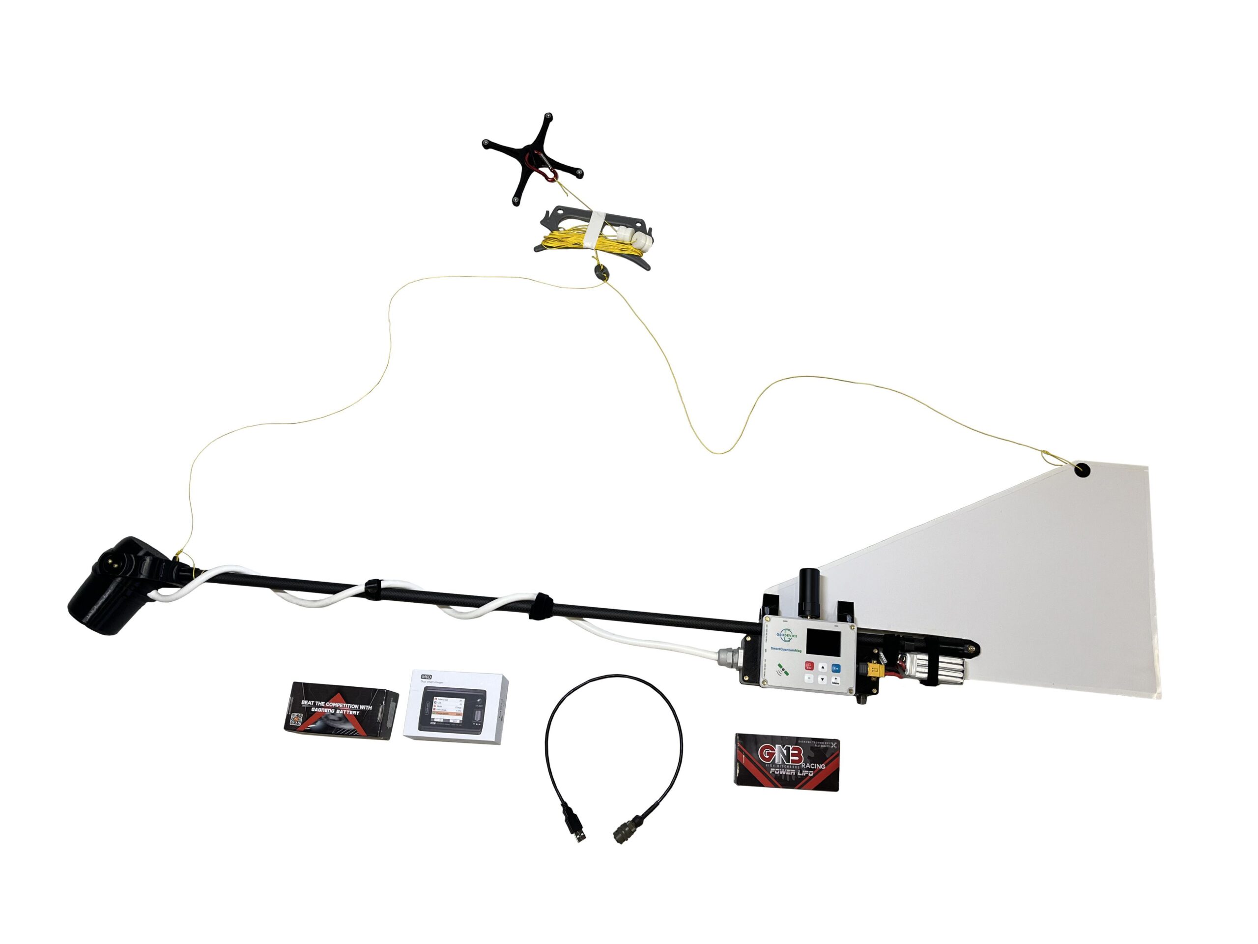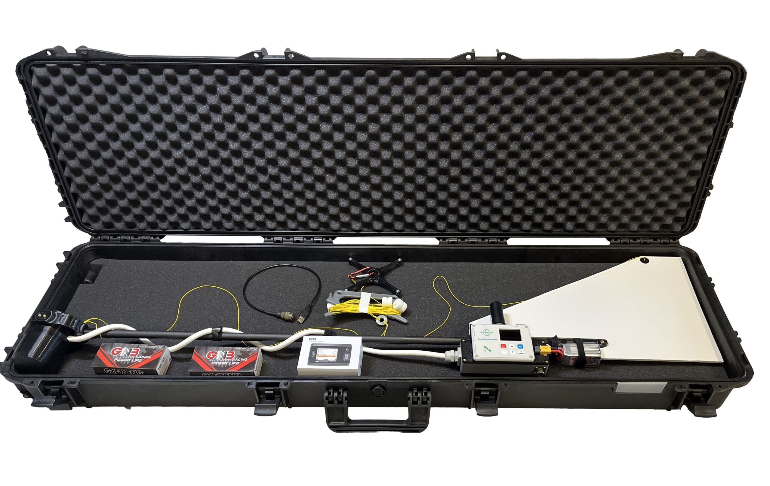 AeroQuantumMag спроектирован для эффективного выполнения магниторазведочных работ с БПЛА. Прибор отличается высокой скоростью измерения (до 100 Гц) и чувствительность 0.002 нТл/√Hzrms. Аэродинамичный корпус с карбоновой рамой весит всего 1.3 кг вместе с АКБ. Малый вес увеличивает полётное время дрона. Магнитометр не требует обмена данными с БПЛА и использует собственную батарею, благодаря чему может быть использован с любым беспилотным летательным аппаратом.